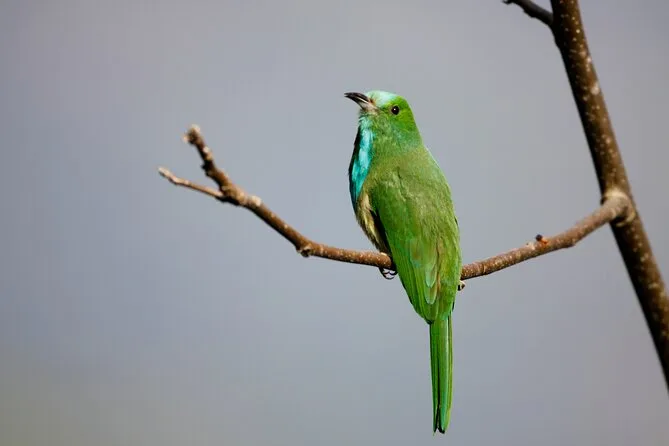 El Parque Nacional Royal Manas está lleno de sonidos: cigarras zumbando, bucero rompiendo ramas arriba, monos charlando en algún lugar oculto. Caminamos por senderos ecológicos buscando Cuco Esmeralda y Bucero Enlazado—el guía del parque conocía todos sus lugares favoritos.