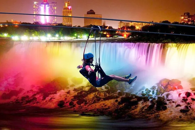Tu día incluye recogida en Toronto o aeropuerto, transporte guiado a las Cataratas con paradas en lugares panorámicos como Whirlpool Rapids y Table Rock Welcome Centre, paseo en barco Hornblower (abril–noviembre) o Journey Behind the Falls en invierno si eliges, degustaciones gratuitas de chocolate, dulce y jarabe de arce, tres horas libres en las Cataratas, cena buffet opcional con vistas a las cataratas iluminadas, y fuegos artificiales sobre el agua cuando estén disponibles antes de regresar a Toronto a última hora.