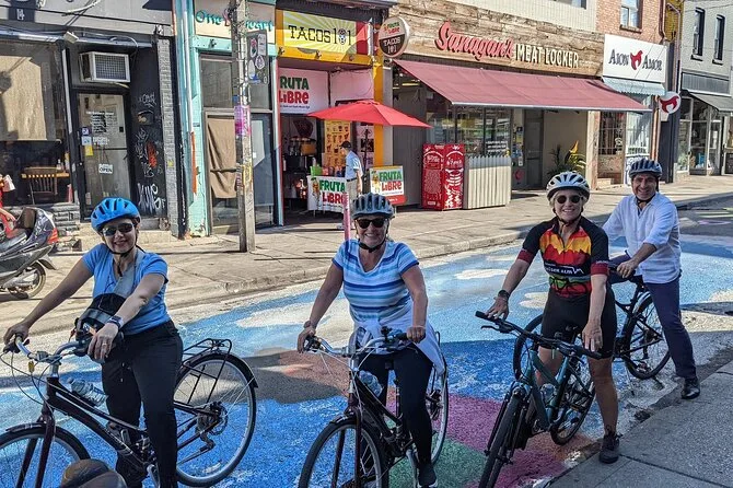 Tu día incluye el uso de bicicleta y casco para cada participante (con asientos para niños y remolques disponibles), agua para mantenerte hidratado entre paradas, barras de granola para recargar energía, y la guía de un local que comparte historias en cada punto—desde Kensington Market hasta Sugar Beach—todo en un paseo relajado en grupo pequeño por el centro de Toronto.