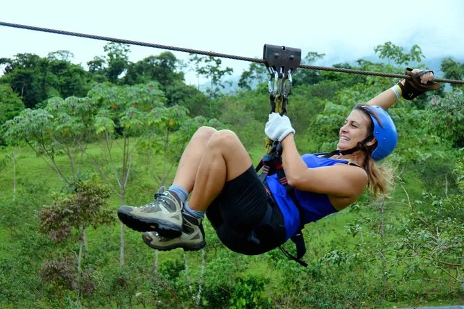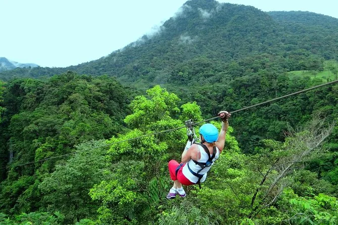 Tu día incluye transporte ida y vuelta desde tu hotel en La Fortuna, todo el equipo como casco y arnés ajustados por guías profesionales que te acompañan en cada tirolesa, además de mucho ánimo en cada parada antes de regresar juntos al pueblo.
