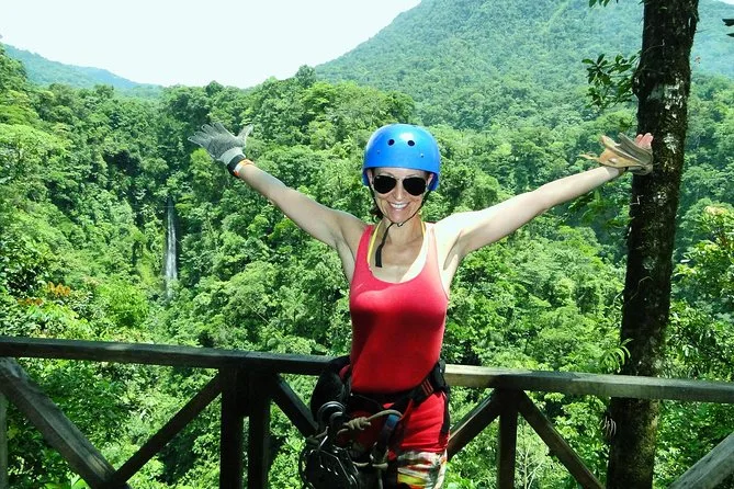 Engánchate y vuela sobre la catarata de La Fortuna en 12 tirolesas, rodeado de vistas al volcán Arenal y Cerro Chato. Guías locales expertos en aves, una breve caminata por el bosque antes del primer salto, transporte desde tu hotel en La Fortuna incluido, y esa sensación salvaje al mirar abajo y darte cuenta que lo estás logrando.