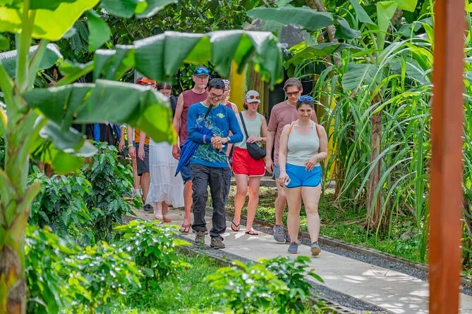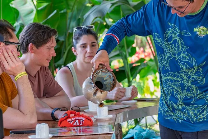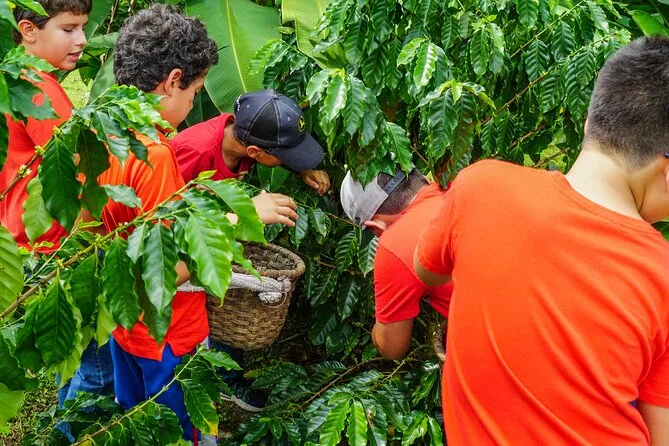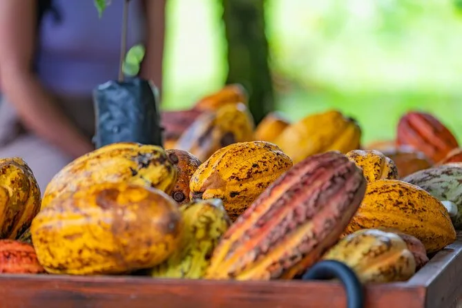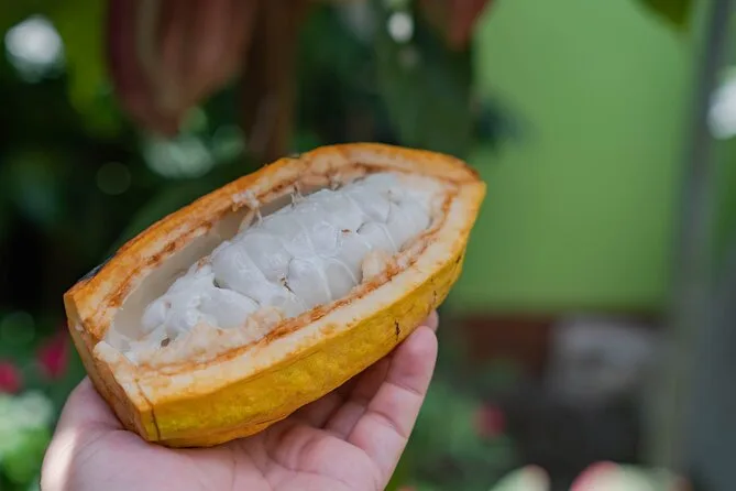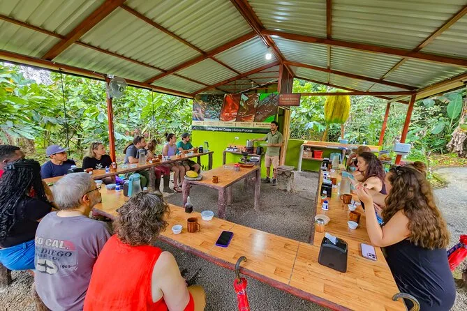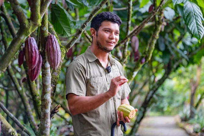 Tu día incluye transporte desde y hacia el hotel si estás a menos de 10 minutos del centro de La Fortuna. Tendrás degustaciones guiadas de cerezas de café, fruta de cacao, chocolate fresco y jugo de caña de azúcar, además de agua para beber durante el recorrido antes de regresar a tu hotel.