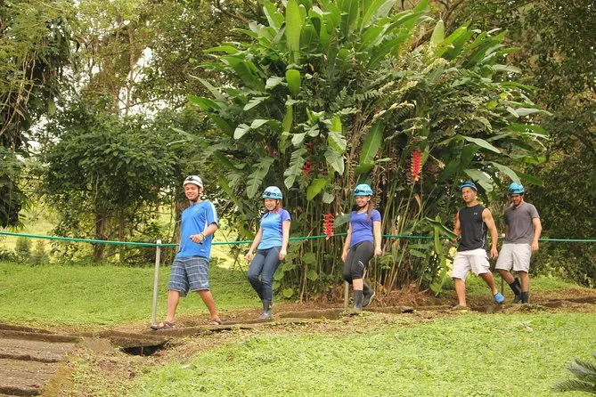 Incluye recogida y regreso al hotel en La Fortuna, un guía local amable (a veces bilingüe), agua embotellada, snacks (buffet de fruta fresca al final), toallas para limpiarse, todo el equipo de exploración (casco, linterna/faroles, botas), transporte cómodo en minivan con Wi-Fi a bordo—y hasta un paquete de fotos para que no arriesgues tu teléfono bajo tierra.