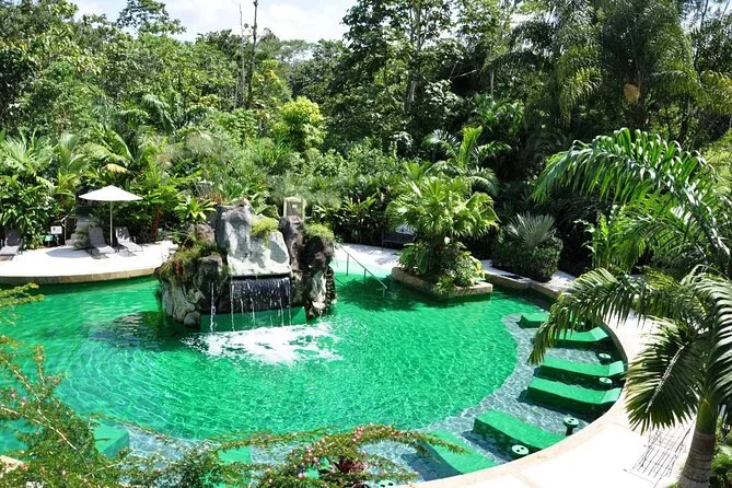 Nada bajo la Catarata La Fortuna y desconéctate en las aguas termales del Arenal