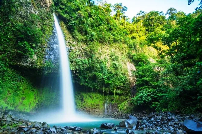 Tu día incluye transporte ida y vuelta desde la mayoría de hoteles en Jacó, todas las entradas (Catarata La Fortuna y Paradise Hot Springs), almuerzo típico costarricense tras nadar bajo la cascada, caminatas guiadas sobre antiguos flujos de lava, y cena en el camino de regreso, todo acompañado por un guía local bilingüe en vehículo con aire acondicionado.