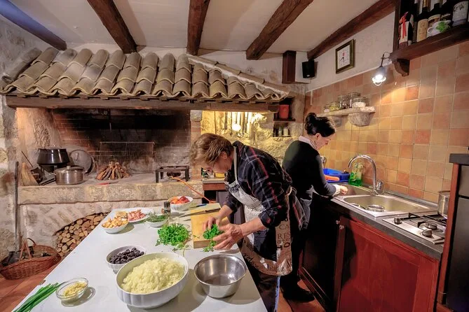 Únete a un grupo pequeño en el campo de Dubrovnik para cocinar platos dálmatas con anfitriones locales: corta verduras frescas, hornea pan, prueba vino casero y ríe mientras disfrutas un menú de cuatro tiempos. Hospitalidad de verdad, charlas sinceras y sabores que recordarás mucho después de salir de Croacia.