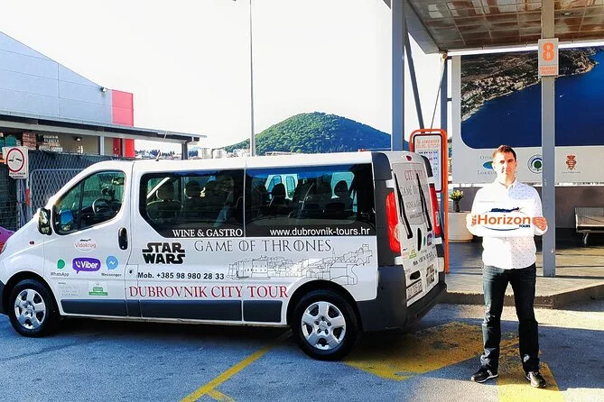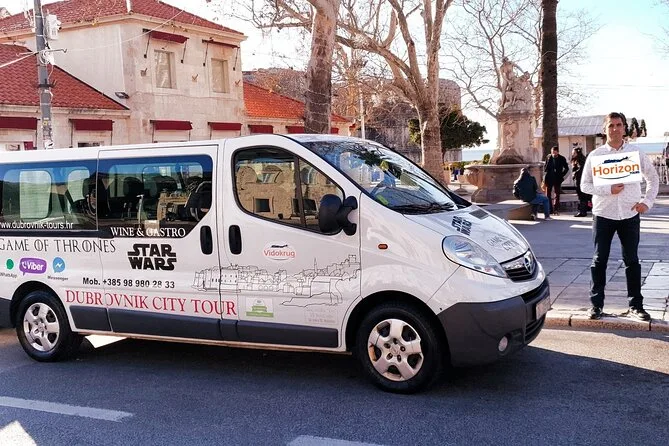 Tu día incluye recogida cómoda en hotel o puerto dentro de Dubrovnik, una furgoneta con aire acondicionado y Wi-Fi para el paseo panorámico, comentarios en vivo del conductor-guía mientras pasas por lugares como el monte Srđ y el río Ombla, y un guía local certificado que te llevará con un grupo pequeño por los puntos clave del casco antiguo antes de devolverte a tu punto de partida o hotel.