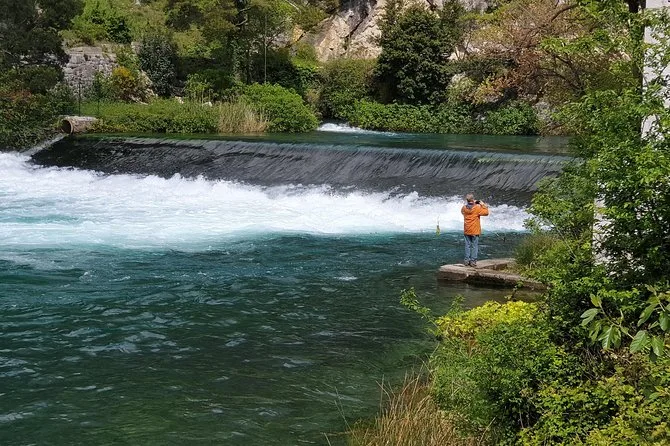 Salimos del puerto de Gruž en una furgoneta que olía a lluvia reciente — las ventanas tenían un ligero vaho que difuminaba los cruceros que quedaban atrás. Nuestro conductor, Marko, nos acompañaba con comentarios suaves mientras serpenteábamos junto al río Ombla. Señaló una casa de verano en ruinas junto al agua y contó algo sobre un poeta que solía escribir allí — ojalá hubiera apuntado su nombre (¿Marin Držić? Mis notas están hechas un lío). Cuando paramos, el ruido del agua era tan fuerte que por un momento no pude escuchar ni mis propios pensamientos. Tenía algo hipnótico.
