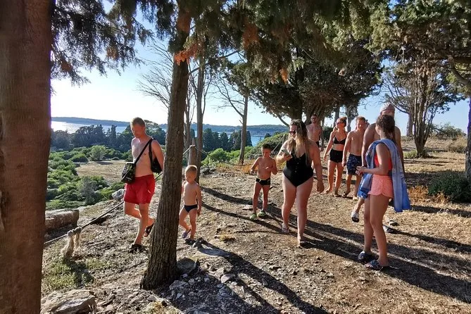 De regreso, remamos junto a antiguos fuertes austrohúngaros medio ocultos entre pinos en Stinjan y pudimos ver el faro de Danijel, donde alguien había creado esculturas originales con madera a la deriva y botellas recicladas. Antes de volver, brindamos con una fría cerveza local eco en la playa, con la piel salada y todo. La verdad, fue menos un tour y más una tarde relajada con nuevos amigos que conocen cada rincón de estas islas.