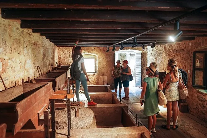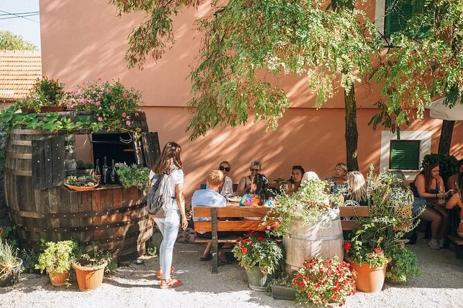 Tu día incluye recogida en Split con transporte en autobús climatizado, paseos guiados por los senderos sombreados de Krka, entrada a puntos del parque como molinos antiguos y la casa de Tesla, un paseo en barco panorámico hasta Skradin con tiempo libre para nadar o explorar el pueblo, y una relajada cata en una bodega familiar con tres vinos dálmatas, aceite de oliva casero, queso y pan antes de regresar.