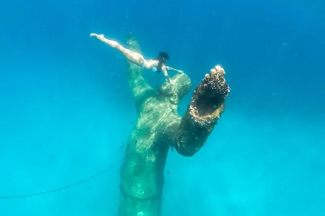 El trayecto hacia la Blue Lagoon fue lo suficientemente movido para mantener la emoción. Esperaba que alguien se le cayera el móvil al agua en cualquier momento. Al llegar cerca de la isla Fumija, Luka nos lanzó el equipo de snorkel (lleva efectivo para el depósito—casi se me olvida), y nos contó sobre el museo submarino. No le creí mucho hasta que vi esas extrañas estatuas bajo el agua, como si alguien hubiera dejado caer toda una clase de arte ahí abajo. El agua era tan cristalina que parecía irreal. Mi máscara se empañaba, pero flotar sobre esas caras de piedra fue algo surrealista. Alguien intentó decir “hola” con el snorkel y solo logró hacer burbujas; nos reímos todos.