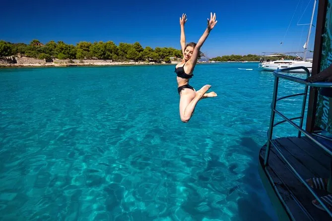 Navega desde Split por bahías isleñas con música, nada en las aguas cristalinas de la Blue Lagoon, haz snorkel sobre estatuas ocultas en un museo submarino (equipo incluido), y relájate con almuerzo y bebidas ilimitadas mientras te secas al sol. Un día animado pero sin prisas, lleno de risas, sorpresas y esos pequeños momentos que se quedan para siempre.