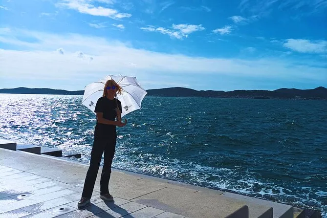 Tu día incluye una caminata guiada de 120 minutos por el centro histórico de Zadar con un guía croata autorizado; posible entrada gratuita a una iglesia medieval o degustaciones de licor Maraschino o queso si están disponibles en la ruta; además de recogida en hotel si eliges esa opción al reservar—si no, solo tienes que encontrarte con tu guía en uno de los dos puntos de inicio según el horario elegido.