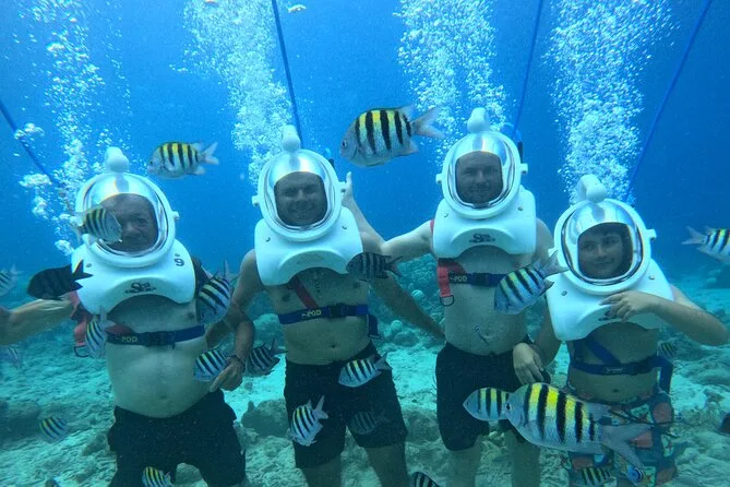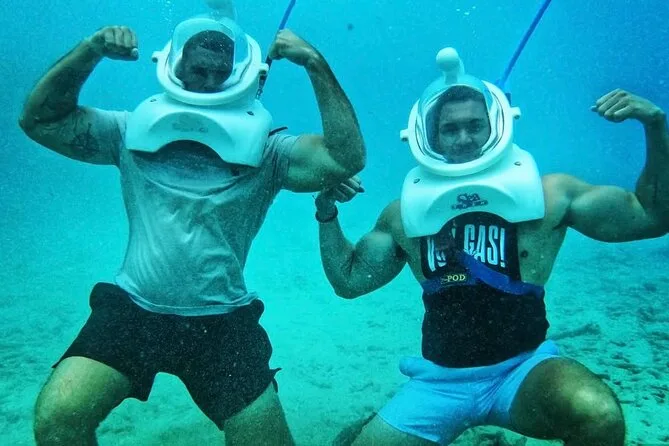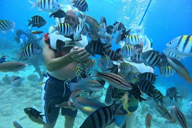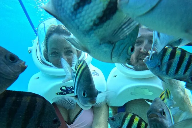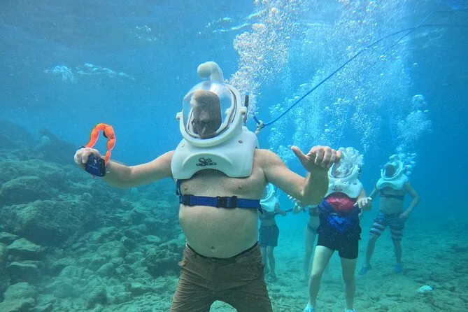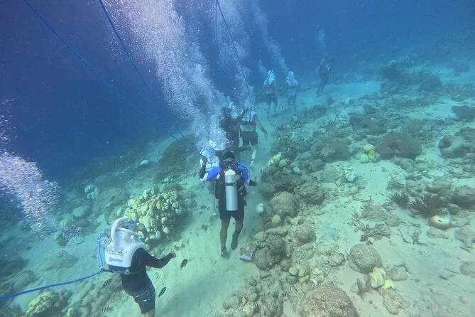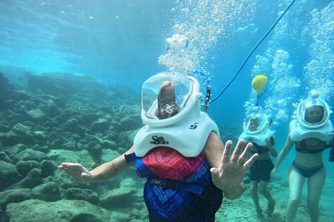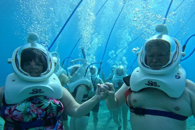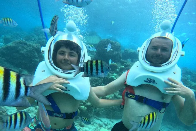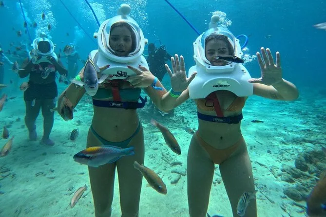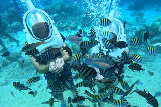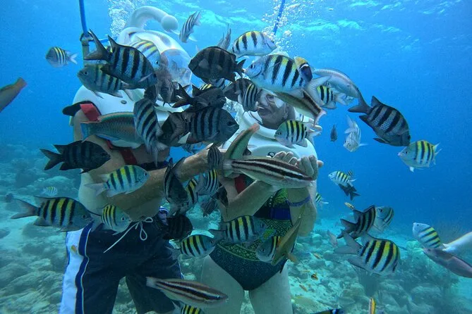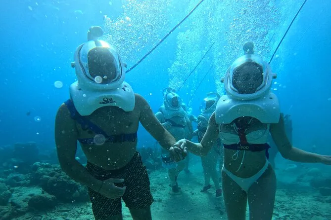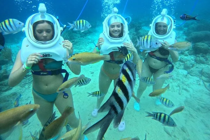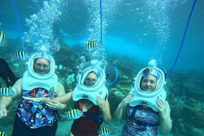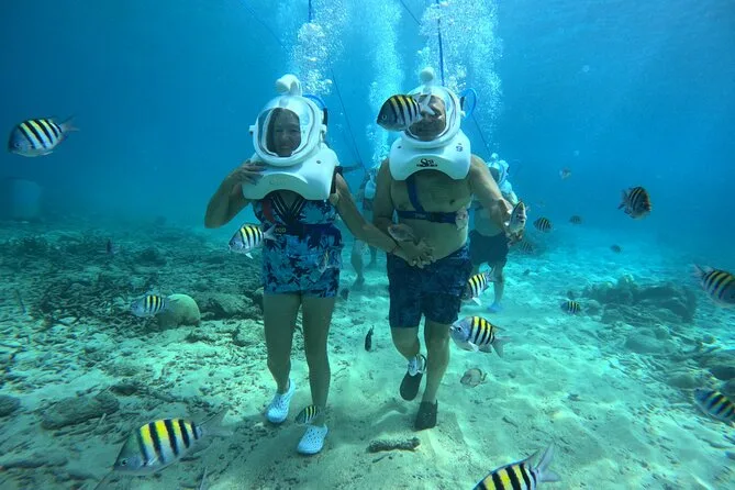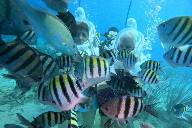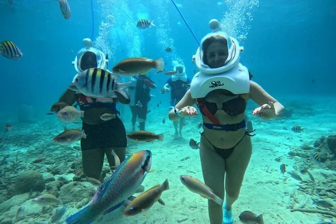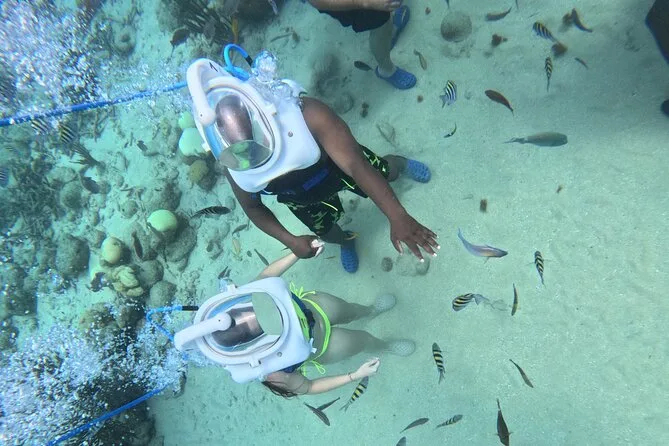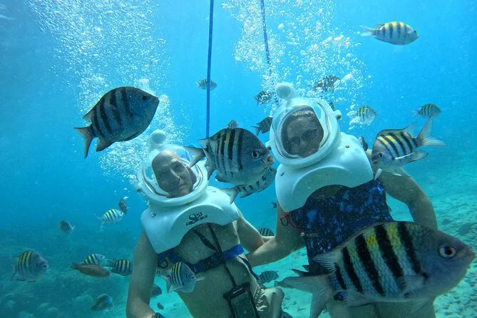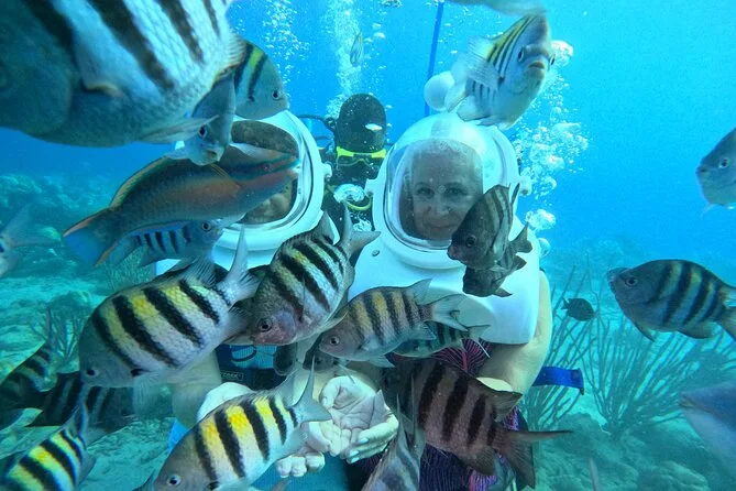 Desde la playa de Curazao entrarás a otro mundo—sin necesidad de nadar—para caminar por el fondo del mar rodeado de peces tropicales. Tu rostro se mantiene seco dentro del casco mientras un guía local hace que todo sea divertido y seguro. Prepárate para risas bajo el agua, sorpresas como peces curiosos que te rozan, y momentos que recordarás cada vez que sientas la brisa salada del mar.