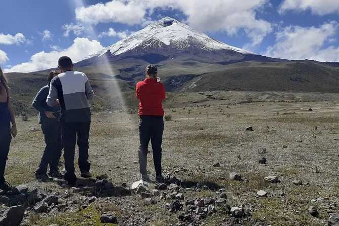 Tu viaje de cuatro días incluye transporte privado con recogida en hotel en Quito, todas las entradas al volcán Cotopaxi, laguna Limpiopungo, laguna Quilotoa (más contribución comunitaria), visitas al pueblo de pintores de Tigua, ruta de cascadas en Baños incluyendo Pailón del Diablo, acceso a la reserva Chimborazo — y almuerzos diarios con sopas y platos locales, todo acompañado por tu guía certificado bilingüe que te acompaña en cada paso.