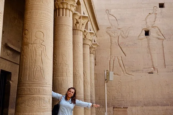 Viaja de Luxor a Asuán con un guía local, explorando los relieves de Edfu y los templos gemelos de Kom Ombo antes de cruzar en barco a la isla de Philae. Disfruta un almuerzo auténtico egipcio y relájate con traslado incluido desde tu hotel, además de historias que recordarás mucho después de volver a casa.