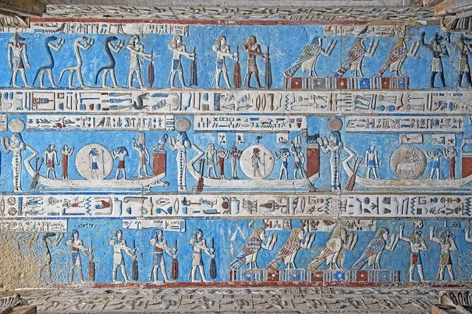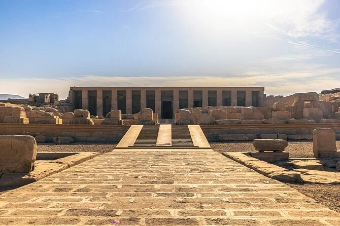 El viaje comienza temprano en la mañana desde Luxor; se tarda unas 2.5 horas en coche hasta Abydos antes de seguir a Dendera.
