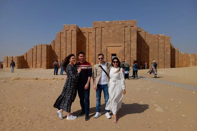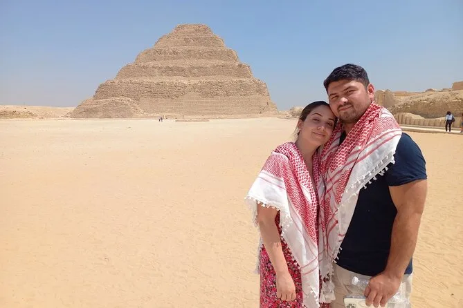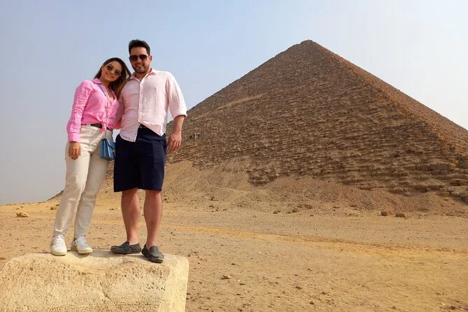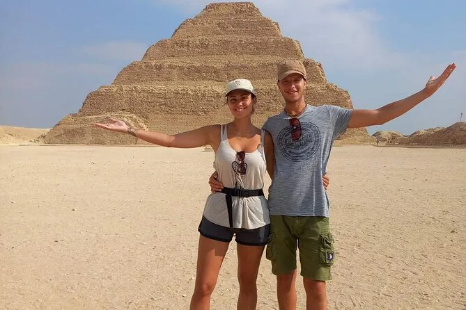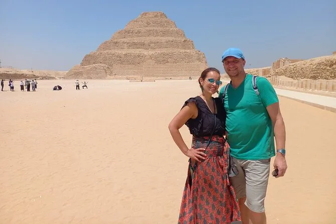 Tu día incluye transporte privado cómodo con recogida y devolución en hotel en El Cairo o Giza, todas las entradas para la Pirámide Escalonada de Sakkara, Memphis (con el Coloso de Ramsés II) y las Pirámides Roja y Acodada en Dahshur. Agua embotellada durante todo el recorrido; además, puedes añadir almuerzo o una hora en quad si quieres darle un toque de aventura antes de regresar por la tarde.