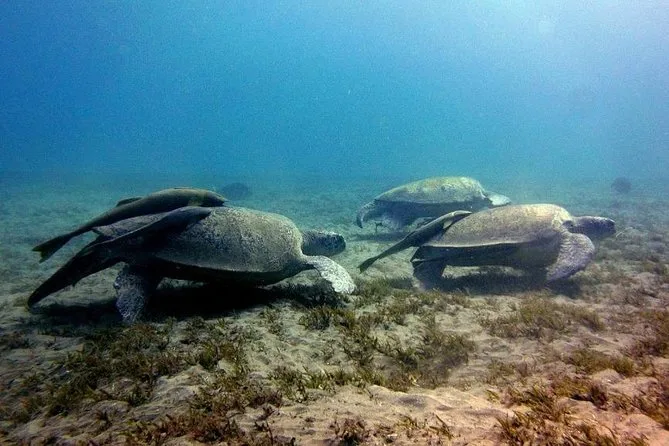 Las tortugas suelen verse casi todos los días, pero los dugongos son animales salvajes y no siempre se avistan.