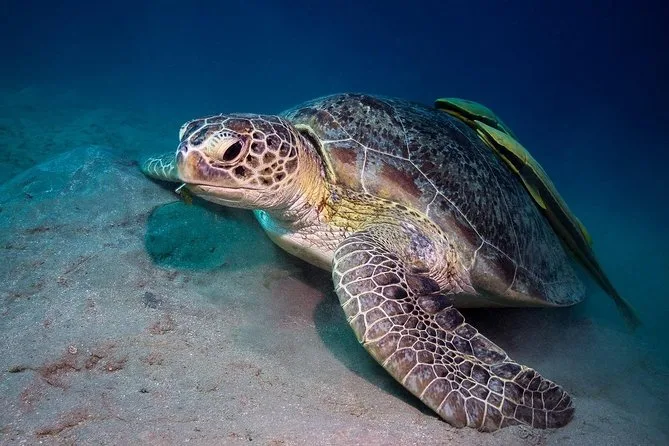 Puedes nadar con tortugas salvajes y quizás ver un dugongo en la playa Abu Dabbab. Es un día tranquilo con mucho snorkel, buena comida y guías relajados—ideal si buscas algo diferente a lo típico en Hurghada.