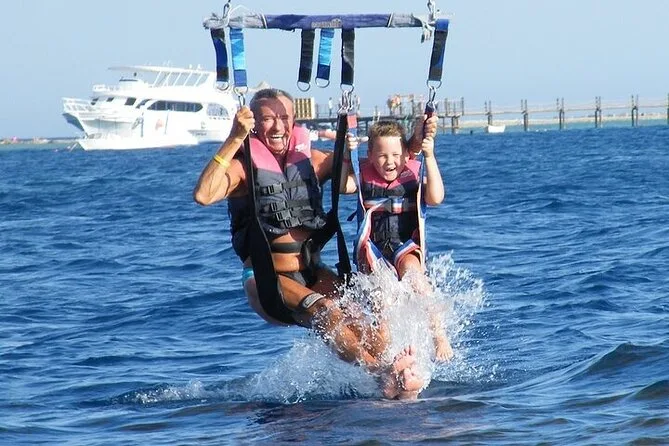 Tu día incluye recogida y regreso al hotel si lo eliges al reservar, entrada a la Marina de Hurghada, paseo en lancha rápida por el Mar Rojo con todo el equipo de seguridad proporcionado por personal certificado, y tu vuelo completo en parasailing con un guía profesional que cuida cada detalle para que solo te preocupes de disfrutar.