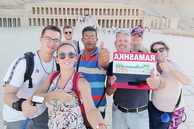 Visitarás el templo de Karnak, el Valle de los Reyes (tres tumbas), el templo de Hatshepsut, los Colosos de Memnón, una fábrica de alabastro y un breve paseo en barco por el Nilo.