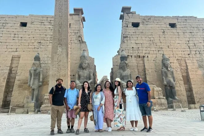 Esta excursión de un día te lleva de Hurghada a los legendarios templos y tumbas de Luxor con un egiptólogo experto. Explora las enormes columnas de Karnak, visita las tumbas reales del Valle de los Reyes, disfruta de un almuerzo local y cruza el Nilo en ferry, todo en una experiencia inolvidable.
