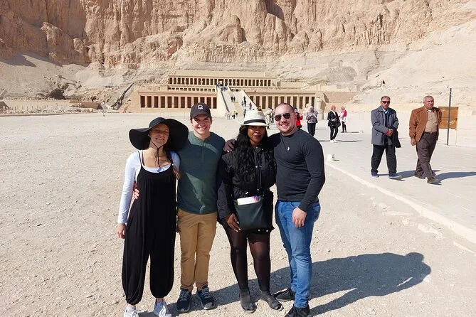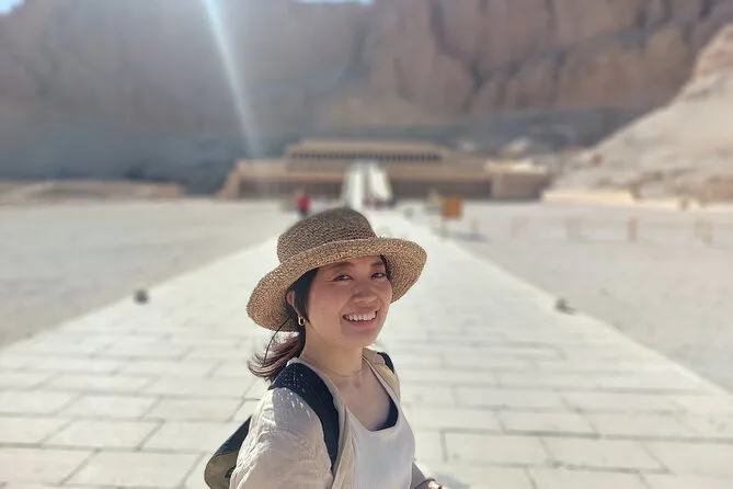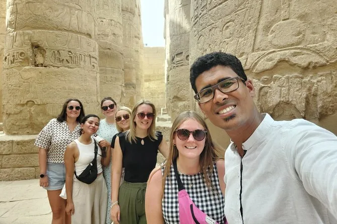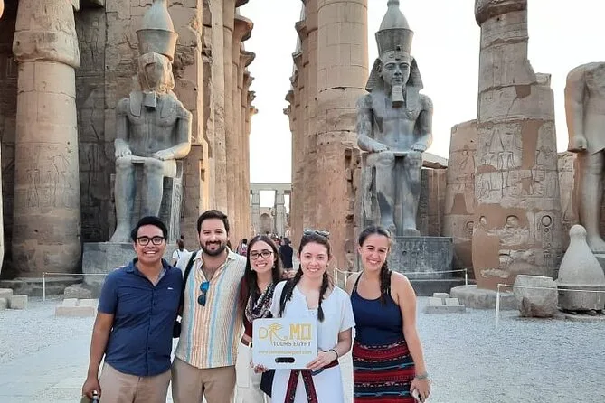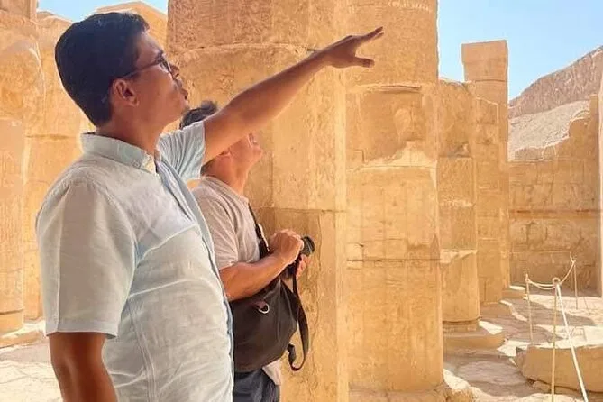Visitarás el Valle de los Reyes (varias tumbas), el Templo de Hatshepsut, los Colosos de Memnón y el Templo de Karnak.