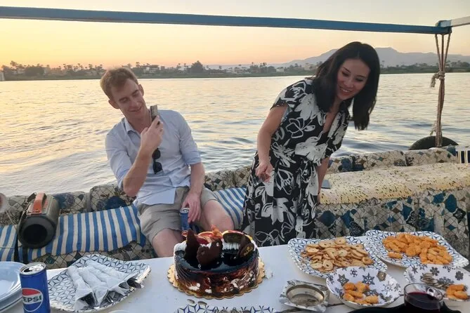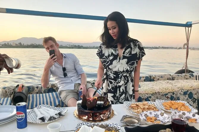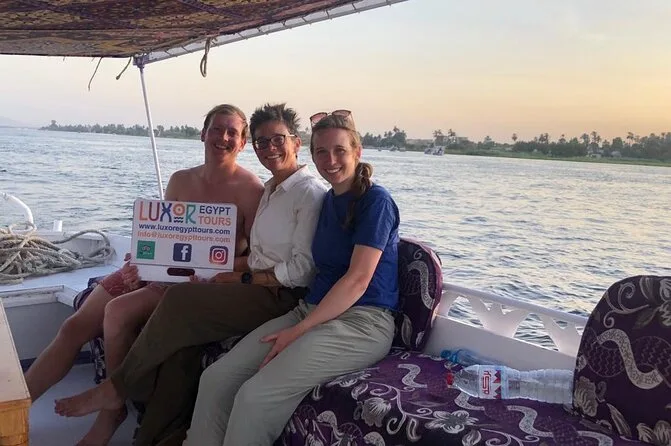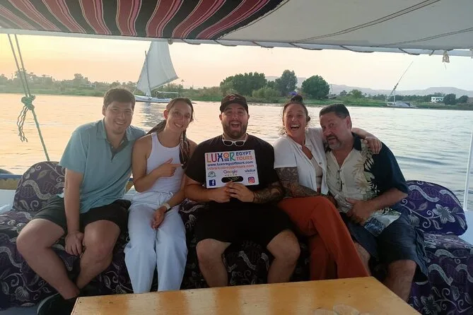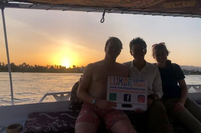 El sol se ocultó tras unas palmeras y todo se volvió dorado por unos cinco minutos — la verdad es que todavía recuerdo esa vista. El paseo no fue largo (quizás una hora o algo más), pero el tiempo se estiró de esa forma especial que tiene cuando realmente estás presente. Al atracar, me di cuenta de que los zapatos estaban polvorientos por subir y bajar, pero no me importó en absoluto. Así que si buscas una escapada en Luxor o algo más tranquilo que ir de templo en templo, este paseo privado en feluca al atardecer es de esas experiencias pequeñas que se quedan contigo.