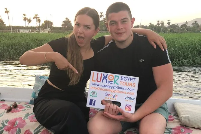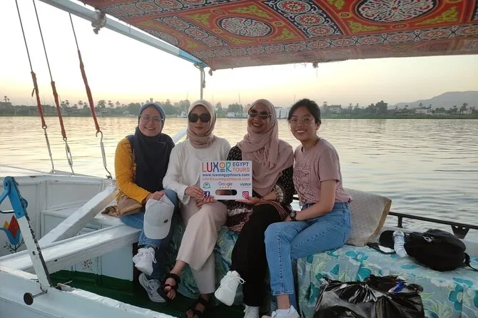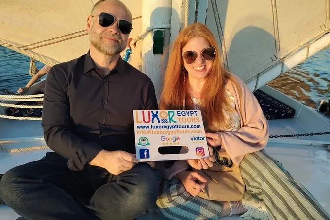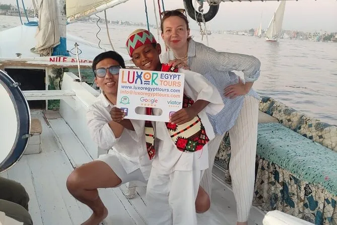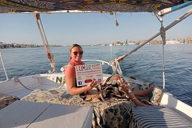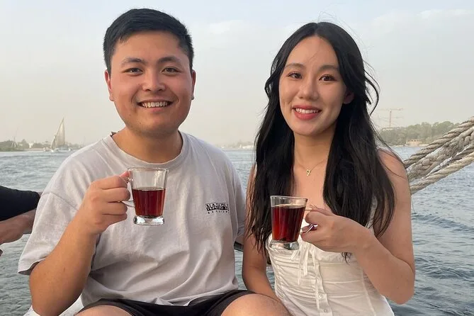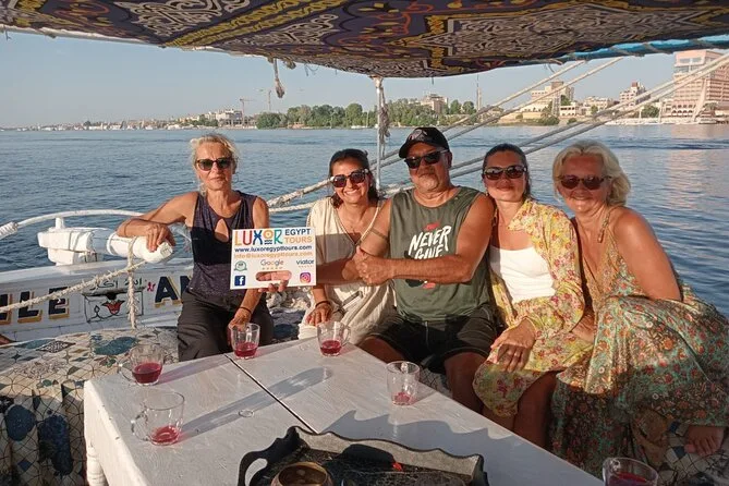 Tu día incluye recogida y regreso al hotel en vehículo con aire acondicionado, entre una y dos horas de navegación privada en feluca por el Nilo con vistas a ambas orillas y al Templo de Luxor, además de agua embotellada y una taza de té egipcio caliente servida a bordo antes de volver al hotel.