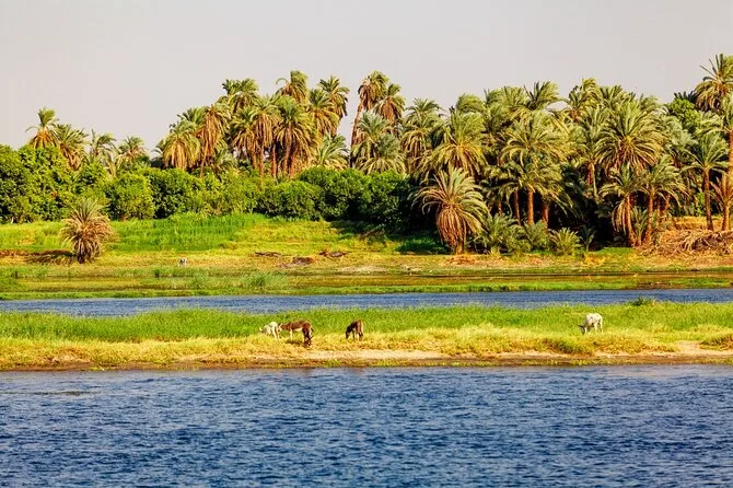 Tu día incluye recogida en tu hotel de Luxor en vehículo privado, entrada a la Isla de los Plátanos donde probarás plátanos frescos y té, agua embotellada durante todo el recorrido, un guía local de habla inglesa que liderará tu paseo privado en feluca al atardecer por el río Nilo, además de todos los impuestos y cargos de servicio, y el regreso cómodo a tu hotel.
