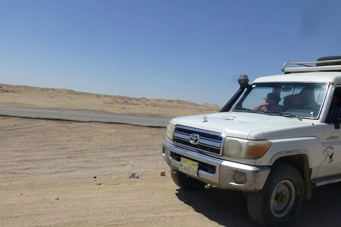 Lo primero que noté al salir de Hurghada fue cómo las luces de la ciudad se iban apagando detrás de nosotros. Nuestro conductor—Mustafa, que conocía cada bache del camino—condujo el 4x4 entre arena suave y zonas rocosas. El aire allá afuera se sentía más fresco de lo que esperaba, con un leve aroma a salvia que llegaba de algún lugar. Hicimos una parada para contemplar los espejismos de calor que brillaban en el horizonte, y apenas se distinguían las montañas del Mar Rojo a lo lejos, cuyos bordes se tornaban dorados mientras el sol comenzaba a ponerse.