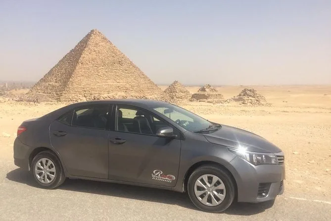 Tu viaje incluye transporte privado en vehículo con aire acondicionado y seguro completo para pasajeros y equipaje; recogida directa en el aeropuerto de El Cairo o en cualquier dirección en Giza a la hora que necesites — sin preocuparte por taxímetros ni buscar taxi al llegar.