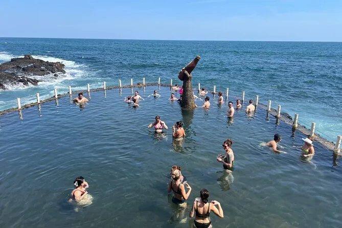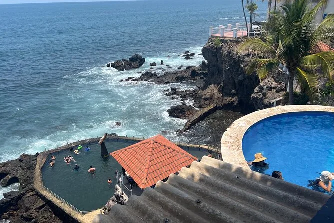 Tu día incluye transporte privado con recogida, agua embotellada durante todo el recorrido, vehículo con aire acondicionado para mayor comodidad entre paradas, además de almuerzo en un lugar local reconocido con platos frescos de mariscos y cerveza artesanal antes de relajarte en una piscina de agua salada del Pacífico.
