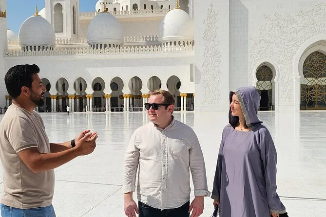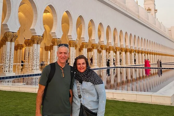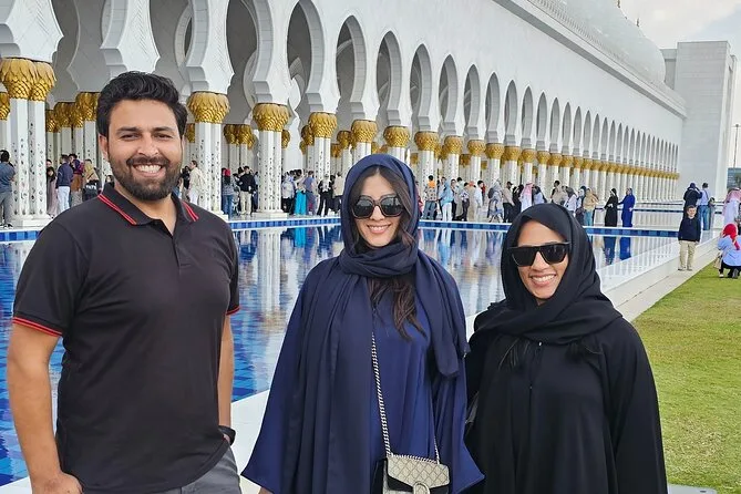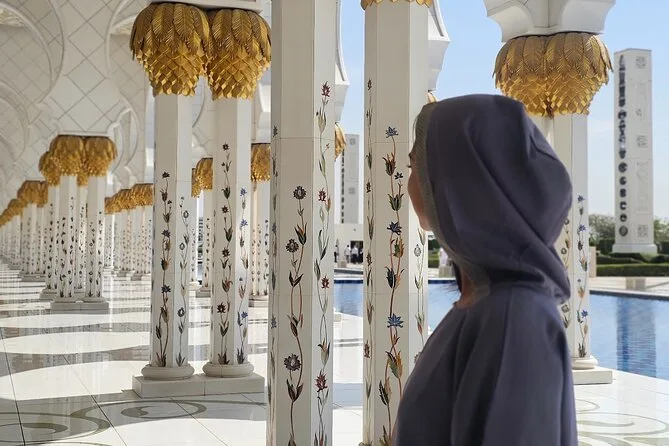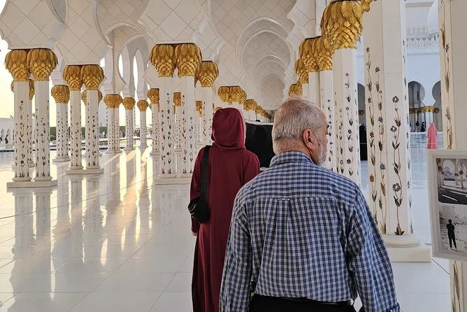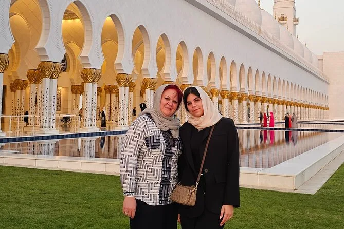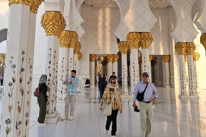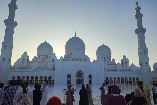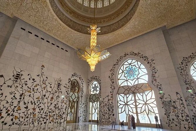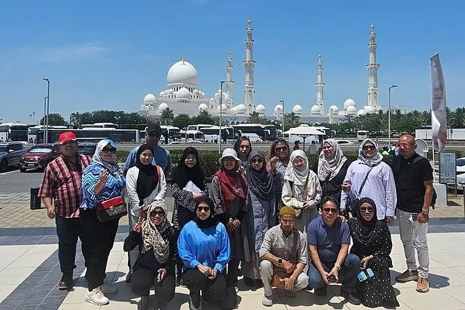 Tu día incluye recogida en SUV desde cualquier punto de Dubái—hotel o terminal de cruceros—y agua embotellada para el camino. Entradas y acceso sin filas a la Gran Mezquita Sheikh Zayed (con 1.5 horas dentro). Guía local durante todo el recorrido, tiempo libre para almorzar en Marina Mall y paradas en todos los puntos clave antes de volver a Dubái por la tarde.