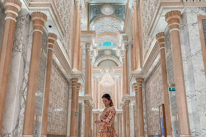 Tu día incluye la entrada a Qasr Al Watan, en el complejo del Palacio Presidencial de Abu Dhabi — solo muestra tu ticket en la puerta y explora tanto como quieras antes de regresar cuando estés listo.