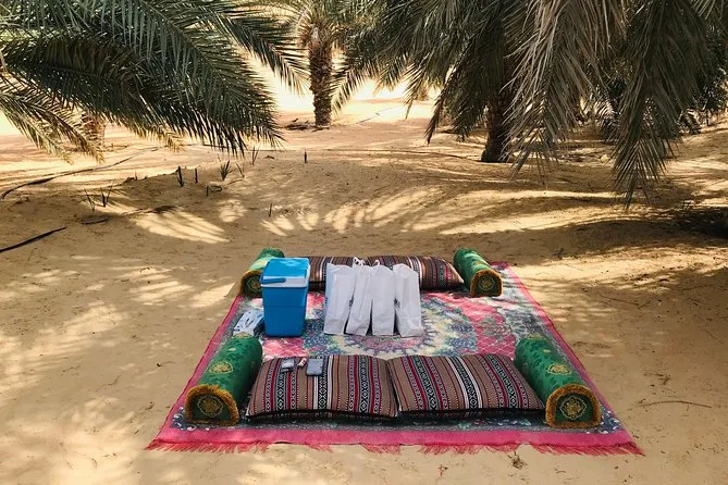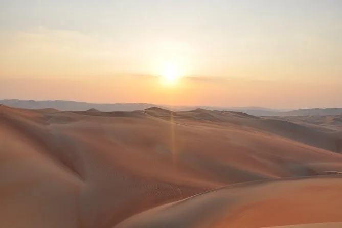 Tu día incluye recogida en tu hotel de Abu Dhabi, todos los trayectos por el Rub Al Khali con un guía local, entrada a la duna Tal Moreb y visita a una granja de camellos, agua embotellada y refrescos durante el recorrido, además de un picnic sencillo cerca de un oasis antes de regresar al caer la tarde.