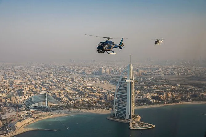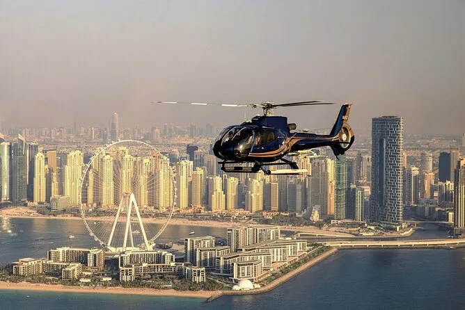Tu paseo en helicóptero por los principales atractivos de Dubái está incluido—solo recuerda llevar tu identificación original y llegar con tiempo para el check-in y la charla de seguridad.