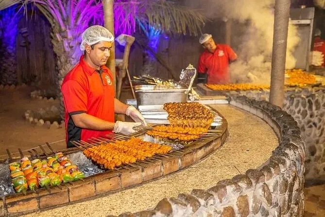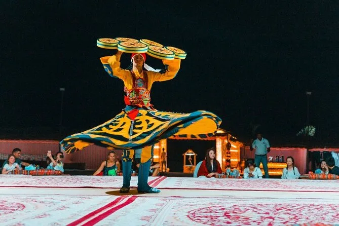 Montar en camello fue… más movido de lo que esperaba, pero bastante tranquilo una vez que te acostumbras a su ritmo pausado. También había pintura de henna; dejé que una de las artistas me dibujara una flor en la mano mientras me contaba sobre su familia en Rajasthan. La cena fue un torbellino de cordero a la parrilla, ensaladas y algo picante que aún no logro identificar. Luego llegaron los shows: danza del vientre (la música te cala hondo), bailarines de tanoura girando sin parar, incluso un espectáculo de fuego que hizo que todos soltáramos un suspiro. Fue a la vez turístico y auténtico, ¿sabes? Para entonces ya empezaban a asomarse las estrellas.
