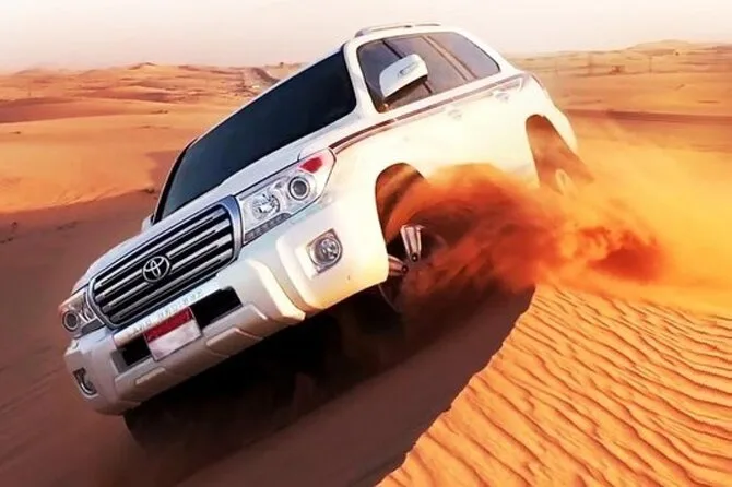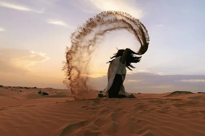 Dune bashing, sandboarding, paseo en camello, pintura de henna, cena BBQ, show de danza del vientre, danza tanoura y espectáculo de fuego.