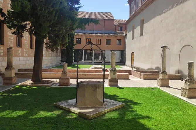 Bajando por la Calle Mayor, la calle parecía estrecha pero llena de vida, con pequeñas tiendas bajo galerías de madera. Nuestro grupo pasó junto a locales que charlaban rápido en español (solo pillé un par de palabras), y la radio de alguien sonaba con una canción antigua que rebotaba en las paredes de piedra. El Museo Casa Natal Miguel de Cervantes es más pequeño de lo que esperaba—más parecido a una casa que a un museo—y dentro se respira un silencio especial, como si todos camináramos con cuidado a través del tiempo. Puedes ver dónde nació Cervantes (o eso dicen; Luis nos contó que hay debate) y estar en las habitaciones donde vivió su familia. Incluso hay un jardín antiguo detrás que huele a hierbas tras la lluvia.