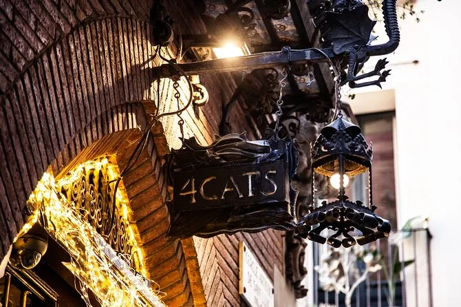 El tour comienza frente al restaurante Els Quatre Gats en el centro de Barcelona.