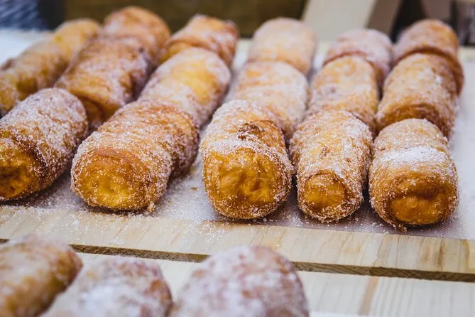 Tu día incluye paseos guiados por El Born y Barceloneta con paradas para más de ocho degustaciones: anchoas blancas, jamón ibérico y embutidos, pasteles catalanes, quesos, pintxos fríos y calientes, churros en su punto, aceitunas con snacks, la clásica paella con mariscos o carne según disponibilidad — y vino y sangría servidos generosamente durante todo el recorrido. Además, un plato sorpresa para cerrar con broche de oro y salir felizmente satisfecho.