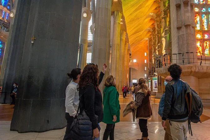 Dentro de la Sagrada Familia… es difícil de describir. La luz atraviesa vitrales con colores que ni sabía que existían — azules y naranjas que se derraman sobre tus manos si te colocas en el lugar justo. Hay un silencio especial, a pesar de los visitantes. Marta nos dejó explorar por nuestra cuenta después de sus explicaciones; me quedé mirando esas columnas que se ramifican como árboles sobre nuestras cabezas. A veces aún recuerdo esa sensación, como estar dentro de una idea loca hecha realidad.