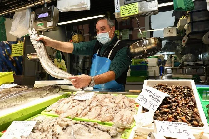 El tour hace paradas en el mercado de La Ribera para probar gastronomía local.