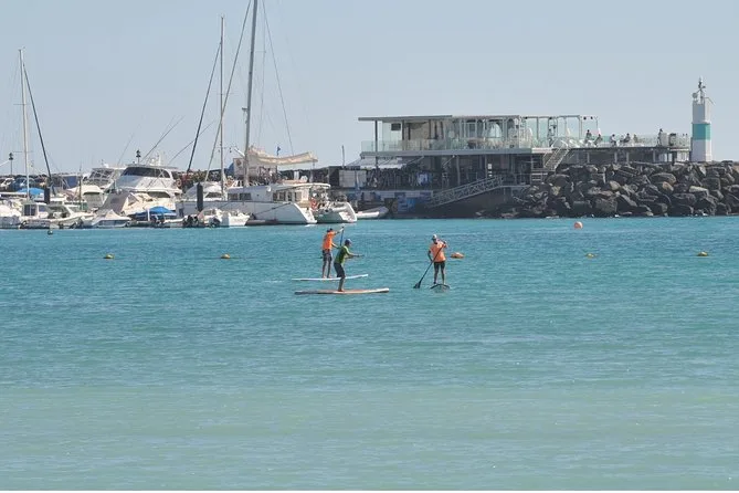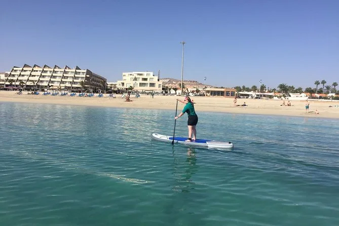 Comenzarás en aguas tranquilas de Caleta de Fuste con un grupo pequeño y un instructor local paciente que te guiará en cada paso. Prepárate para piernas temblorosas al principio, consejos suaves y muchas risas mientras aprendes lo básico del stand up paddle. Al final sentirás esa emoción tranquila de deslizarte de pie sobre el agua clara del Atlántico — una experiencia que recordarás más tiempo del que imaginas.
