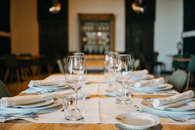 Tu día incluye un recorrido guiado por las bodegas llenas de arte de Solar de Samaniego en Laguardia con tres catas de sus vinos tintos; luego disfrutarás de dos entrantes de temporada, patatas a la riojana, chuletillas de cordero a la parrilla con ensalada, arroz con leche de postre y café—todo maridado con su vino Crianza mientras contemplas las vistas a los viñedos antes de volver a casa satisfecho.