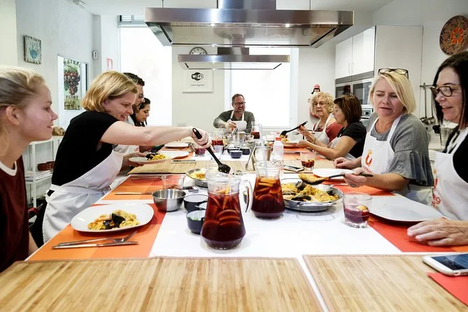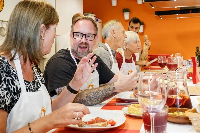 Tu día incluye instrucción práctica con una chef local que habla inglés en el centro de Madrid, todos los ingredientes frescos (con visita al mercado por la mañana), bebidas como sangría durante la comida, emparejamiento con otros viajeros si vas solo, adaptación a dietas si se solicita al reservar, accesibilidad para silla de ruedas durante toda la experiencia y un recetario como recuerdo.