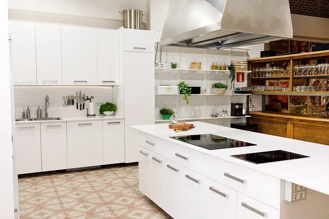Tu día incluye una clase práctica de tapas y paella con la Chef Lola en una cocina privada y acogedora cerca del Retiro; todos los ingredientes; vino tinto o blanco ilimitado, cerveza, refrescos y agua; y al final, podrás disfrutar todo lo que prepares antes de volver a las calles de Madrid.