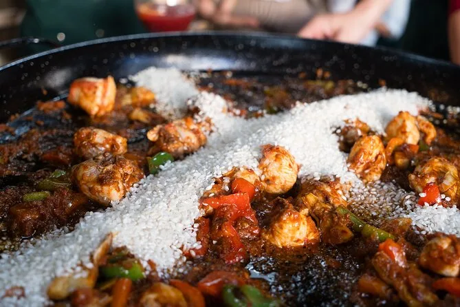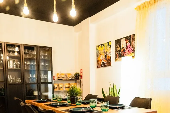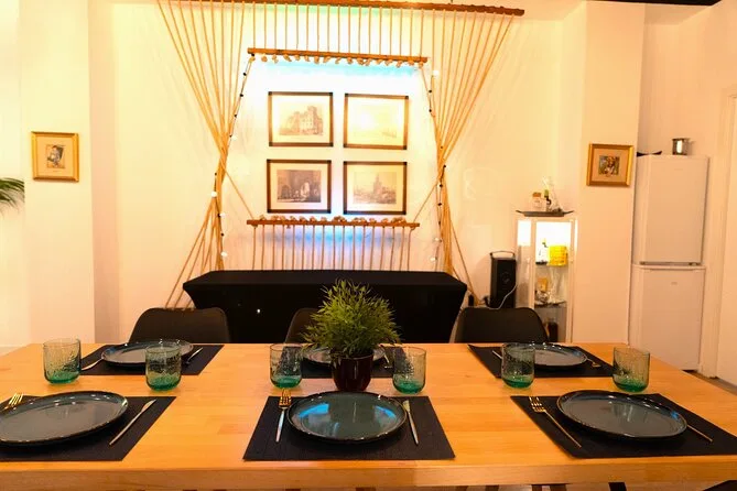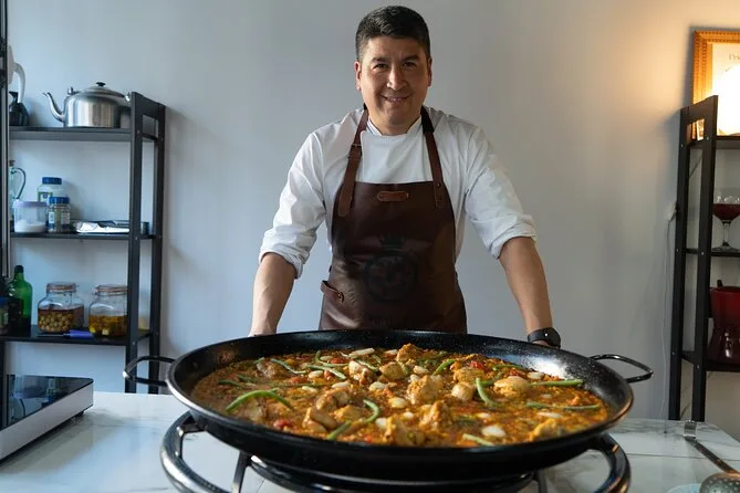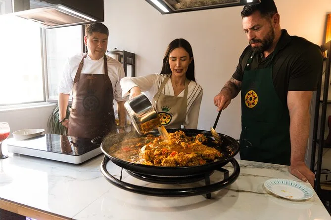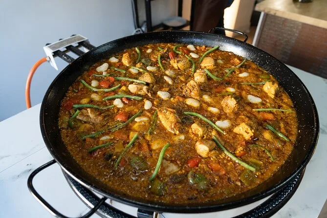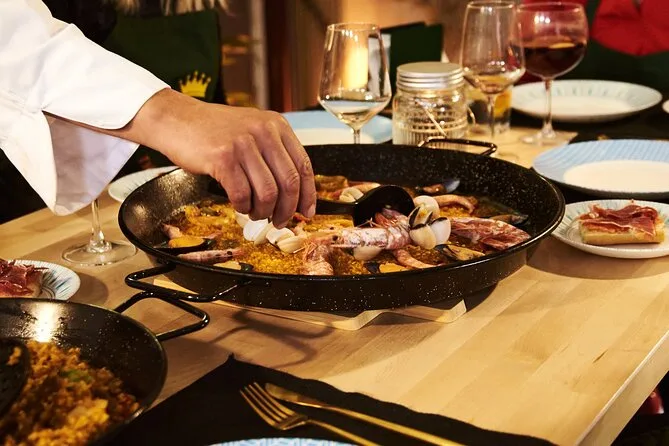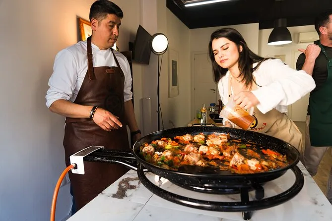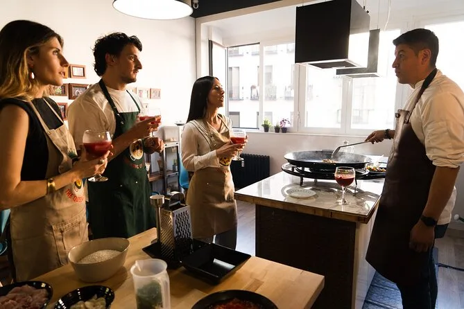 Únete a locales en el centro de Madrid para cocinar paella al fuego, preparar sangría auténtica con once ingredientes (¡no solo vino!), picar tortilla de patatas y bruschetta con jamón, y sentarte a comer como en familia. Una experiencia práctica, cálida y llena de detalles que recordarás siempre.